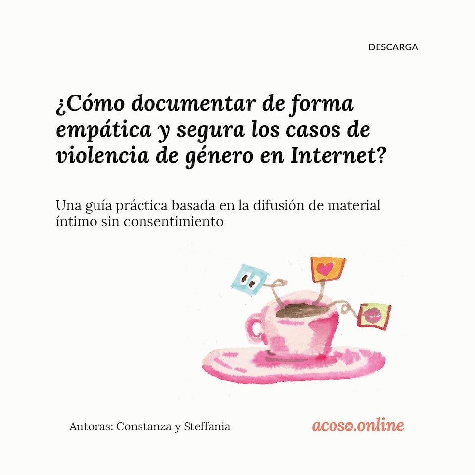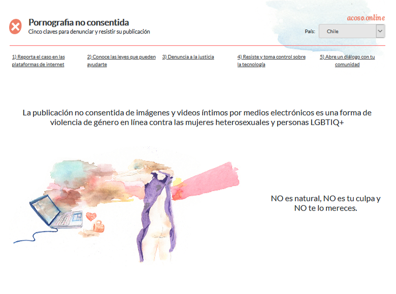 Acoso.Online is a comprehensive resource for victims of online gender-based violence (and other stakeholders), primarily related to disseminating nonconsensual pornography. From reporting to online platforms, pursuing legal remedies, opening community dialogue, and defending your sexual freedoms, Acoso.Online walks victims and their supporters through the necessary steps to report, recover, and resist.